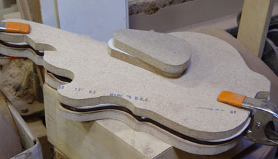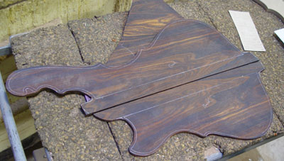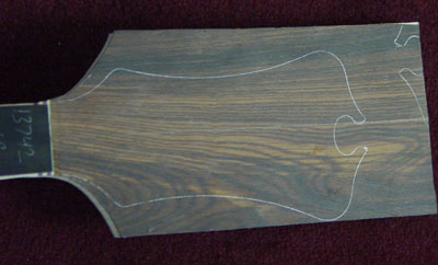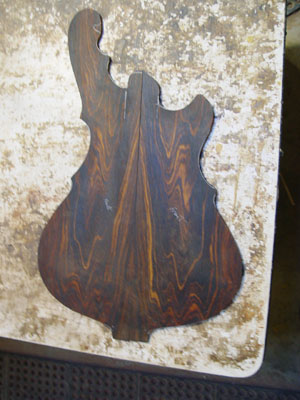 This is gonna be a series II fretless 4. Bookmatch to center front & back, continuous wood backplates & pickup covers, maple/purpleheart/ebony neck, vermillion core, and all the goodies that go on a series II.
