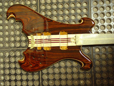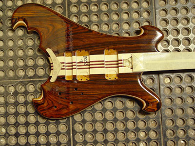 Not really possible to curve the edge facing the bridge in anymore, the strings need some brass to retain against. It's a little hard to see in the photo, but the E string slot comes as close as is comfortable to the edge. Look at the electronics layout photos, you can see the string slots a little better there.