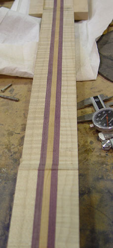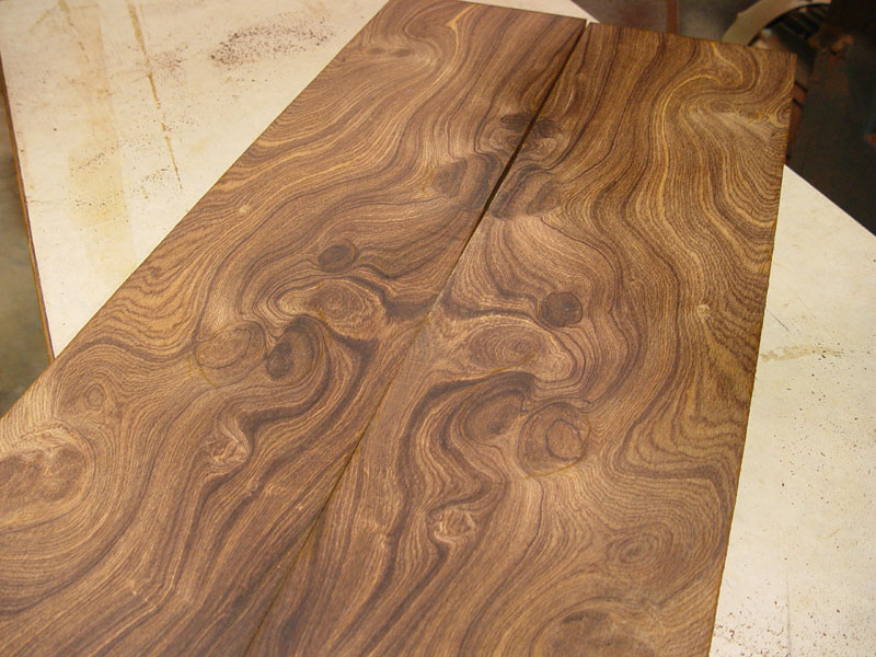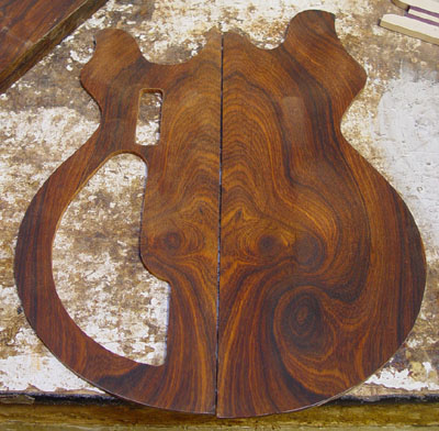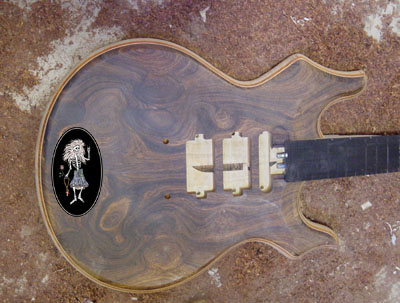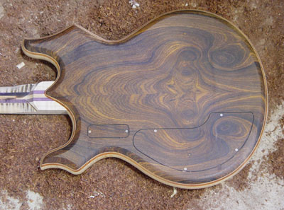 The guitar is assembled with about 8 coats of finish on it. Mica will post a photo later today or tomorrow.  The finish really deepens the color and brings out the grain.