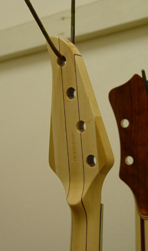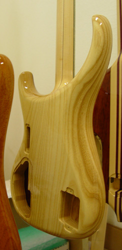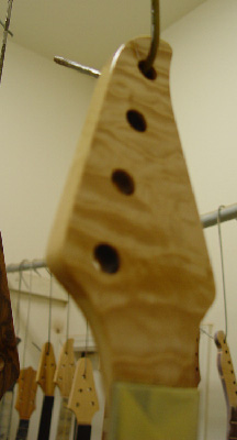 You're a real trooper! You must never sleep. Thanx for the pix. The poly finish really brought out the grain in the Ash body, especially where it was carved for the tummy cut. Was the peghead veneer from the same wood as the top or was it from another source (i.e., outsourced commercial veneer)? While the pic is a little fuzzy, it appears that your artisans did find a good match..it does resemble the top quite nicely.