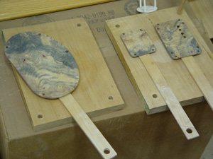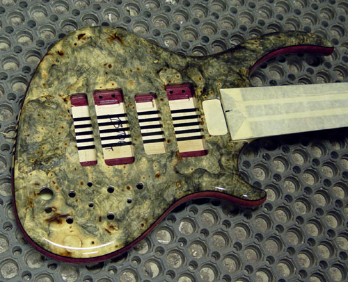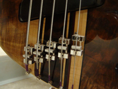 Thank you, Mica dear! I dig it all!!! It is somewhat Buzzar!! My concern with the posts as tail pieces is that the string length must be taken into consideration. After all we are already at 36 string length. The high strings on my bass would have to be very-very long given the picture as an example. If the string is too long after the bridge, it could by accident set up a resonant frequency that would create wolf tones (harmonic phase cancellation) or dead spots on certain pitches. The picture above tells me that this phenomenon could easily occur on the higher three strings. Please share that with Mike. Will there be any loss of sustain with out the weighted bridge or will the individual bridges make up for that? Since Mike's bass is already set up that way, what is his (and yours) take on the sustain issue and over-all sound? What advantages with this offer? Will I be able to get a good steep angle from the individual bridges to the string end? What if we were to use the individual oval bridges and a heavy tailpiece (ie:Bird)? What about individual staggered small birds holding one or two strings each? Birds with individual height adjustments? Hmmm...