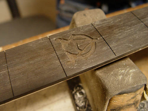 Inlays are getting sunk into the fingerboard now:
