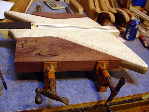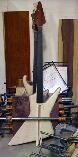 And Chip checking the postioning before gluing the neck to the body: