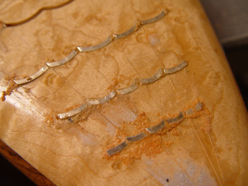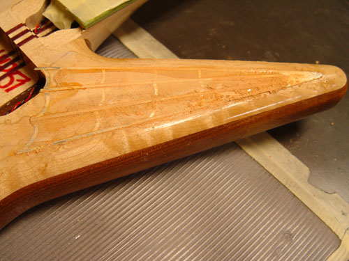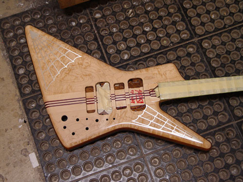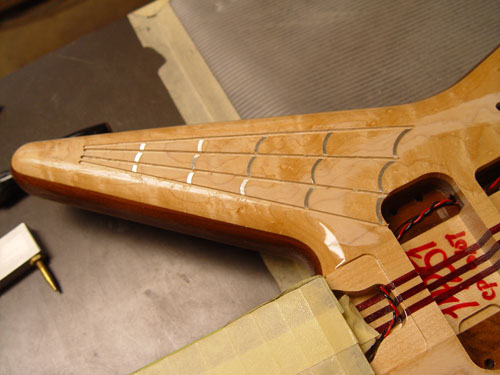 No, not yet. I talked to Mica a few days ago, and they are in the process of drilling the holes for the master volumes/selector switch/pan pot on the lower horn, making the backplates, and finally applying an amber tint to it. I'm hoping to have it soon.