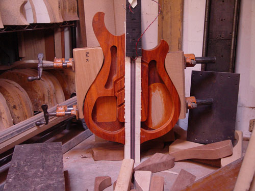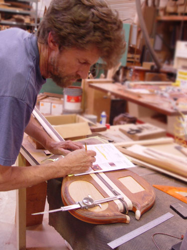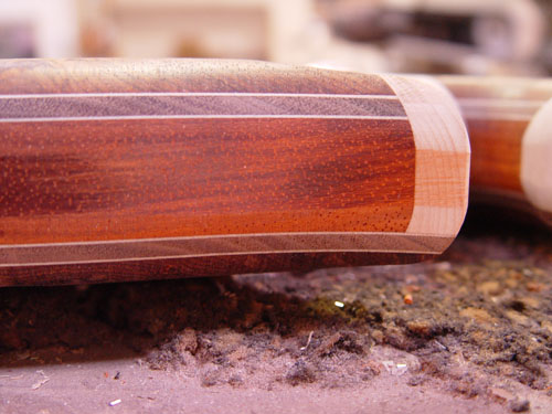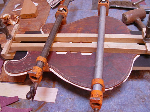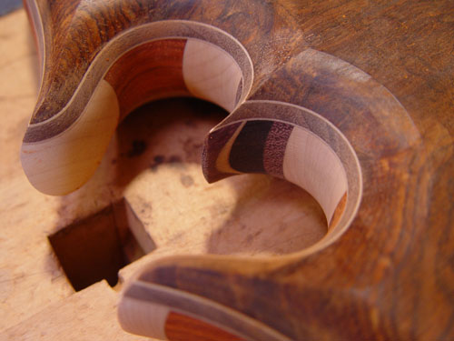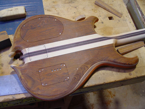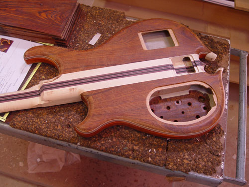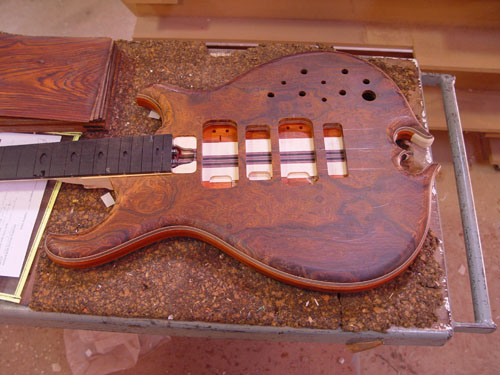 Top laminate getting prepared for it's future appearance on the bass: