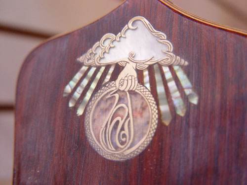 That logo is stunning. What shell has been used to inlay the dragon and alembic?