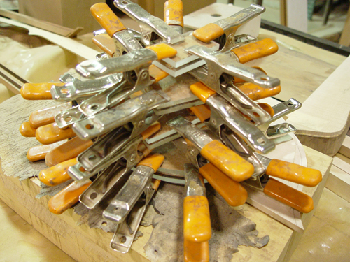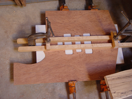 Chip also pointed out the stack of wood that will be the top, back, and plates the body: