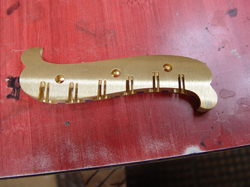 So we're still hashing out the finish on the tailpiece. It will be goldplated along with the rest of the hardware, but instead of a big shiny mirror, we are thinking of either a hammered or engraved design. Also, I think a bevelled edge would look cool. Whatever we do, we want to get the decision made soon so this bass can be born!