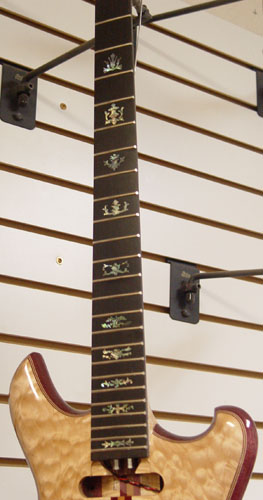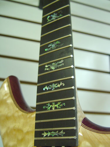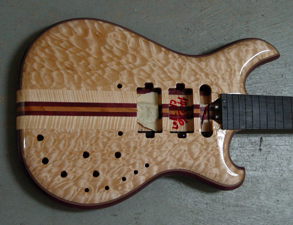 These neck pictures were from June, just before my doctor put me on bedrest for the remainder of my pregnancy. Sorry I forget to get this going sooner. This is a little like a timewarp, because here's your guitar today: