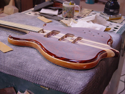 In a few days, I'll post a picture of your bass with sealer coats on it, then the long wait. It takes 4-6 weeks in finish for something else interesting to happen, so I'm just preparing you for this in advance.