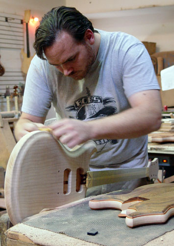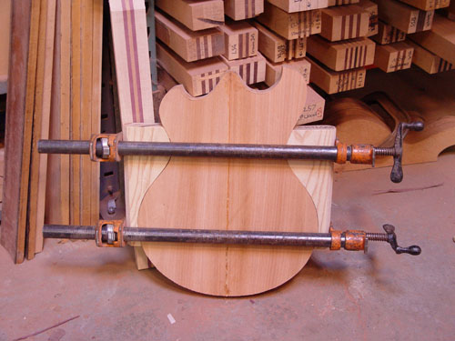 It's modified because we didn't apply the sheer black on the outside edge. Everyone here kept looking at this guitar and thinking it really didn't need it, as it was so pretty already. We called Mark and asked if it was okay if we omitted it, and he agreed. Just today a few of us here were admiring how nice it was turning out. Can't wait to see it all shiny!