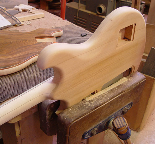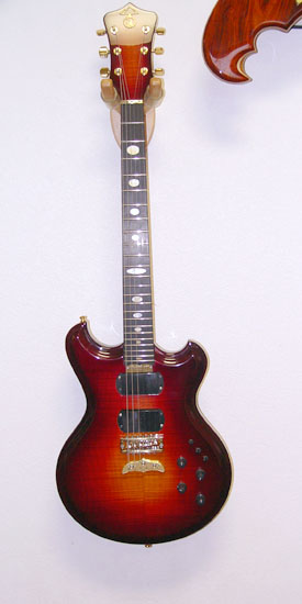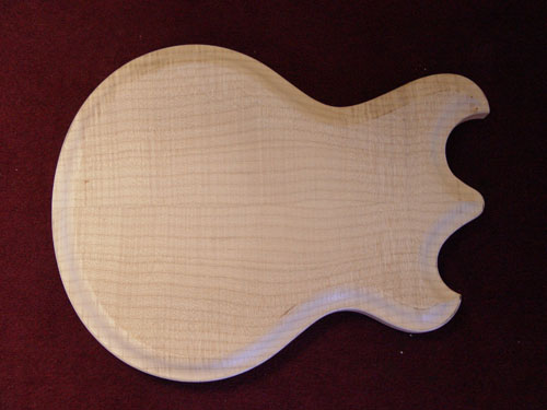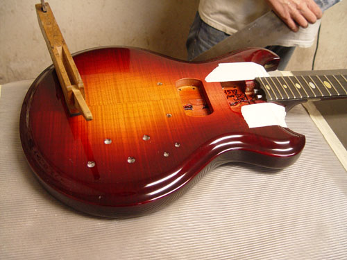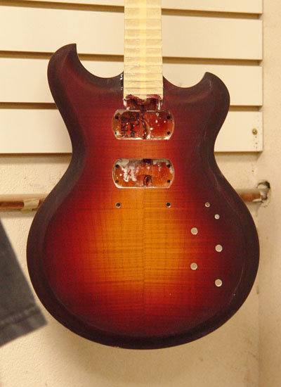 The body is actually a light color Mahogany. Here's the guitar with the slightly modified Wineburst finish, rubbed out and ready for final buffing: