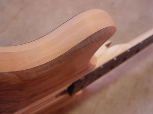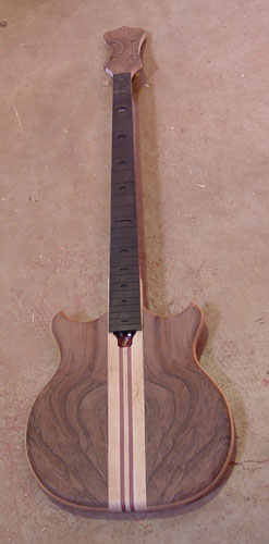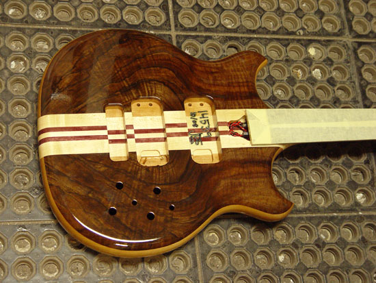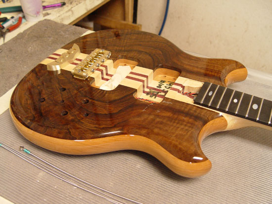 Just getting preset, which means the stainless steel frets are now in place, and the hardware is going over to the chrome plater tomorrow.