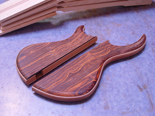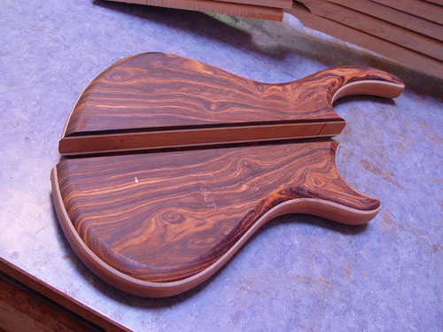 What's in the body sandwich - cocobolo, maple, mahogany, maple, cocobolo? It sure looks great so far!