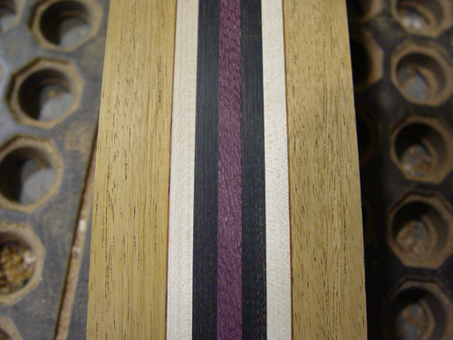 My in-progress custom Further has vermilion lams in the neck, as well as a vermilion core.  The PH next to the ebony framed in maple on this one looks especially classy.