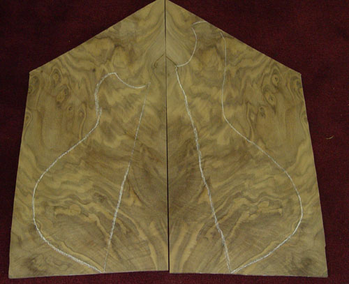 Hey Jeff,  Bob got that new Superb Walnut sliced up and chalked out some references for your bass. These are the pieces you selected.  For the top: