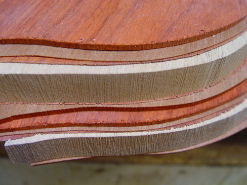 The vermillion/Mahogany Lams look great- I was worried my quest for subtlety would be too subtle. There are some amazing optical illusions in that photo of the stack of wood.