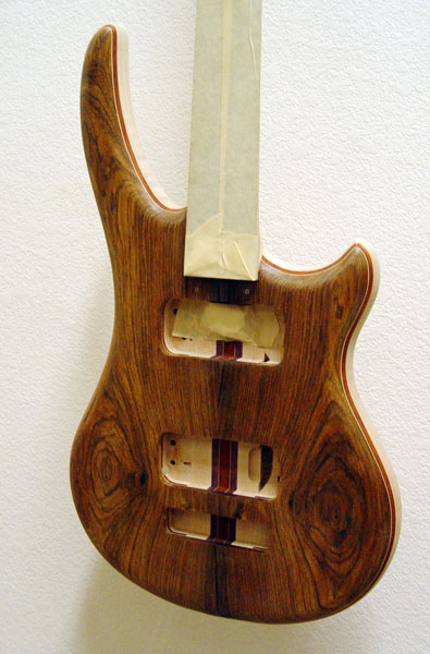 There is no finish on the bass in the photo, but it has progressed since this photo. I'm trying hard to get one with finish so you can see how amazing the wood looks.