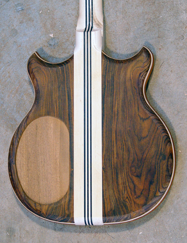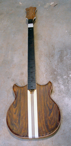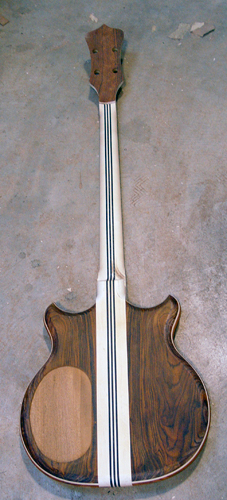 That means it's time for the inlays (including the custom one @ th 12th fret) and frets to go in. We'll also set up the bass and send the hardware to the goldplater while the rest of the finish work is completed.