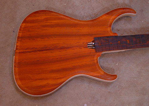 The pictures are all taken at different times of the day with available light. The Coco Bolo fingerboard will get a little darker once oiled, but the striking grain will still be visible.