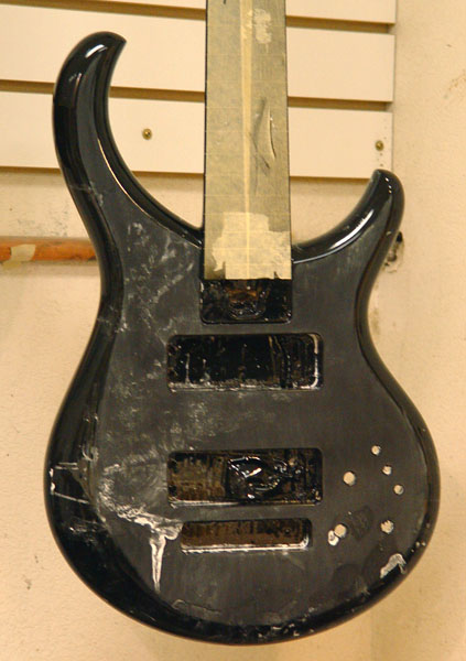 This is in rub out, after wet sanding. The bass is waiting to chill out after the friction of sanding and will get polished tomorrow or Monday.