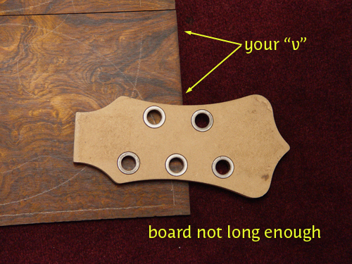 and the neck taper was shaped. Now we have your favorite medium scale neck dimensions available for any set neck bass. Cool, huh? The peghead veneers glued up: