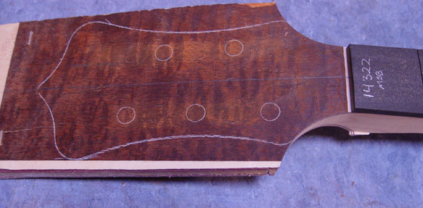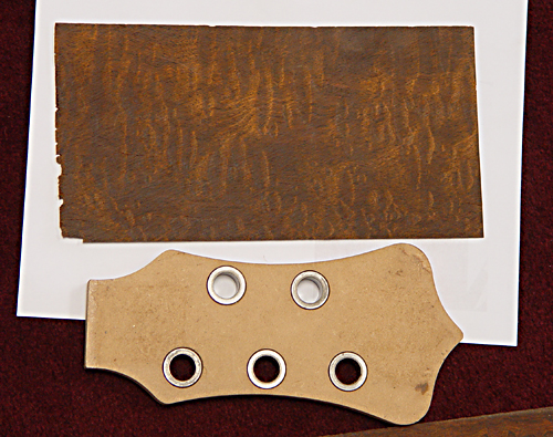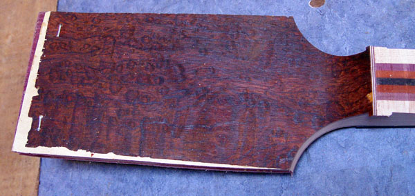Bob had selected a nice all-over Quilty piece for the front peghead veneer: