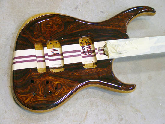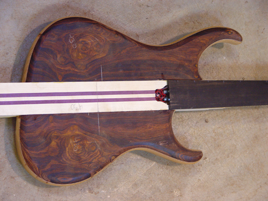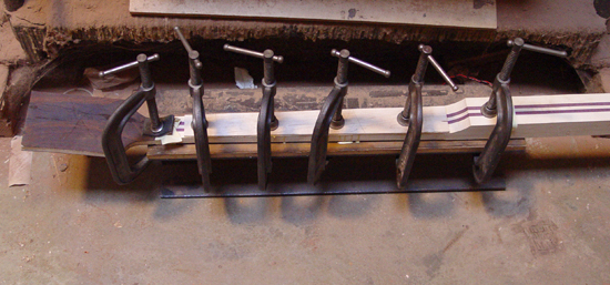 Last week I got a picture of your bass getting the fingerboard glued up: