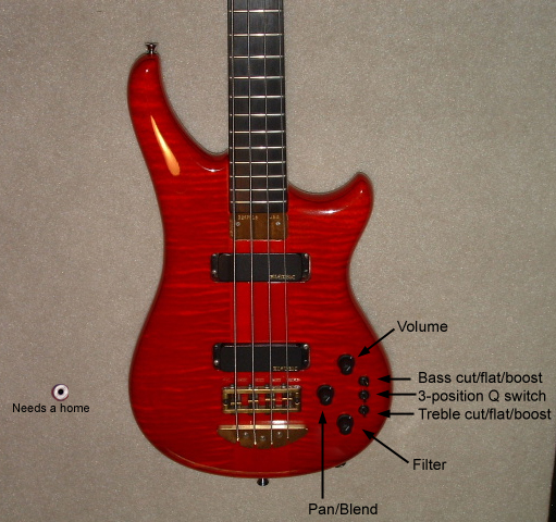 The system is just absolutely perfect, and mind-bogglingly versatile. The 3-position Qs are perfect! 6dbs is a nice Q level as a reference, and I can either boost it a little more to 9dbs or cut the Q to O. It's so simple to select sounds with the filter, boost or cut the Q, and mix the sound from the two pickups... it's just awesome. But the kicker is the extra bass & treble knobs. The versatility they add is absolutely amazing, and perfects the filters, since anytime I take away trebles with the filter -to get a certain sound with the Q- I can compensate with the treble control.
