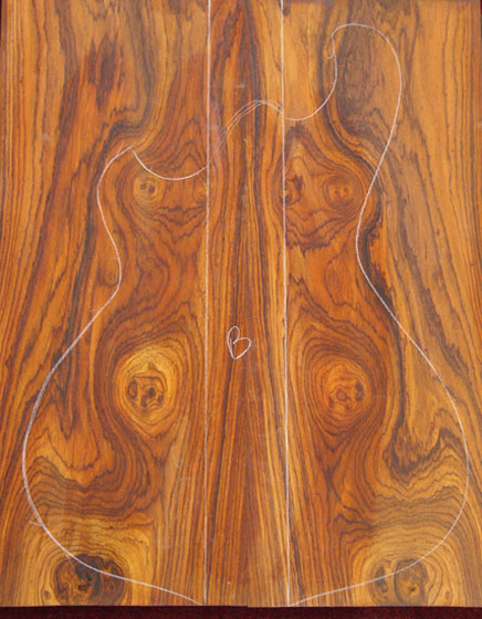 Yeah, I'm pretty excited! It's pretty far along at this point... the Coco Bolo bookmatched pairs have been glued up, the pinstrips are on the body core halves, and I imagine they'll have those glued on any day and be ready to carve the front and back shortly after.