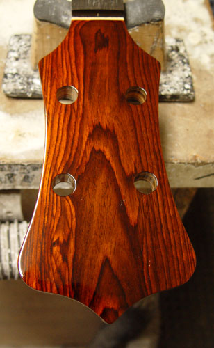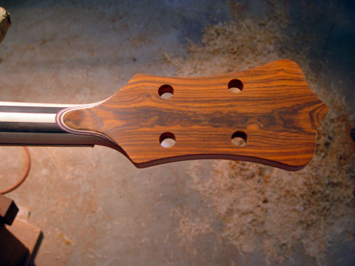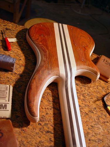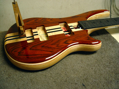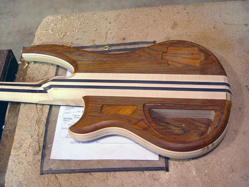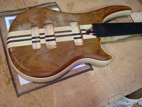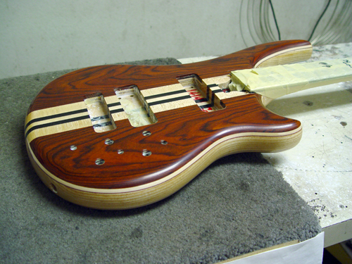 Valentino asked me to send you some nice photos today. Here's your bass just before James put in the frets: