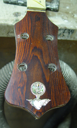 I want Susan to come up with something creative that will knock my socks off in a design. With my real name being Hardy Cash and always signing my initials H$ I figured why not stick it on the bass. She said the only place to put it is under the tailpiece but I was thinking right in the middle of the 4 tuning posts on the front headstock. I'll talk with her about that though...