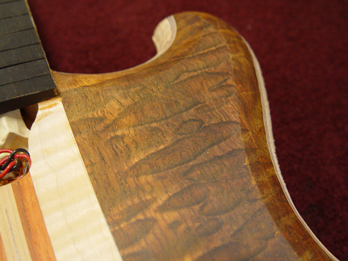 Since the top is sanded, you can finally see some of those amazing Coco Bolo quilts!  This is going to be on hold a few days while I'll work out a control layout for a side-mounted jack (it takes up alot of room inside).