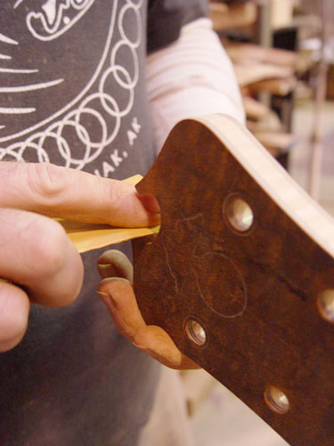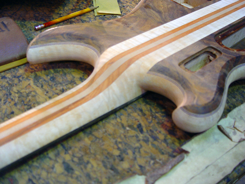 You also wanted to see the upper horn area, (mostly) cleared of sanding dust: