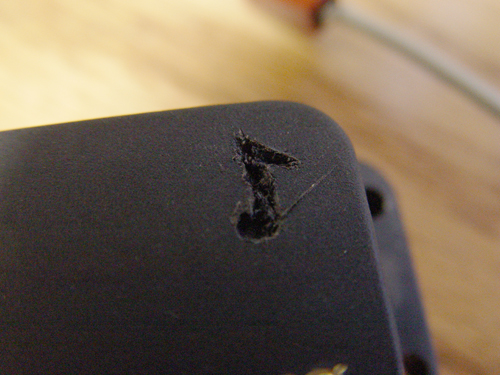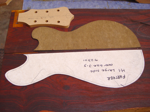 Which would actually look a little cooler since the center will get sanded away, bringing the pinches in closer. If you want to get a non-bookmatched peghead with simlar placement, this is about the only other choice:
