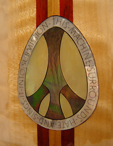 Thanks. You've pegged the lineage: Woody (This machine kills fascists) to Pete (This machine surrounds hate and forces it to surrender) to me.