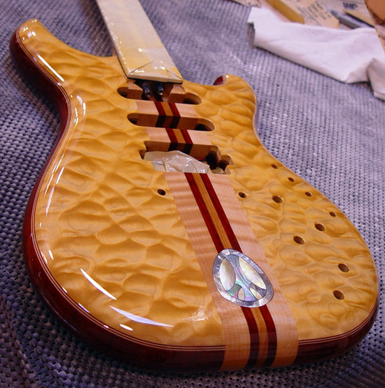 You saw it engraved a few days ago, but now it's been filled and it's living in your guitar: