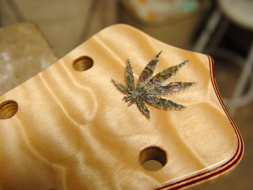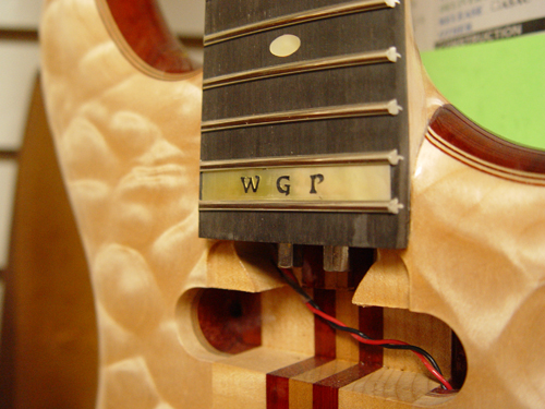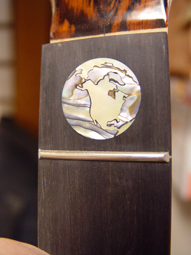 I have been doing some levelling, fretting, and fret marker inlays, and I'm getting ready to do some logo inlays.