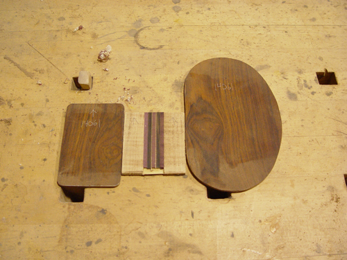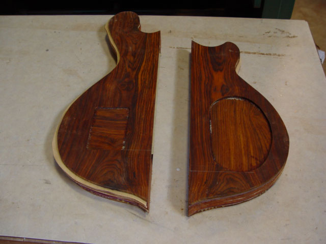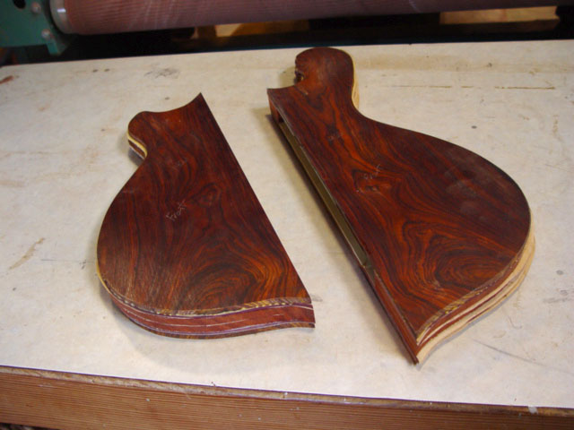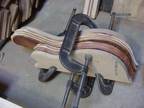 It's waiting for the neck, the clamps are just to keep things flat and ready to glue to the neck.  I asked Chip to open up the clamps so we could see clearly what was going on: