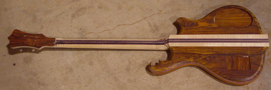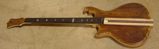 It's so exciting to see the bass in various stages of gestation. You know, the strange thing about Cocobolo is that it appears so different in its' raw form. It was so hard to visualize the color from the wood bank photo. And this being my first custom, makes it a little scary. You're always second guessing yourself. I guess In Val/Mica/Susan/Chip/James/etc... we trust should be my motto from here on out.