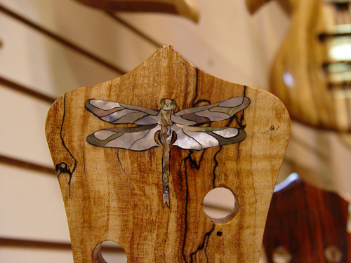 The dragonfly inlay is cut, and should land on the back of the peghead tomorrow: