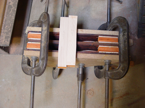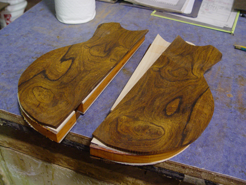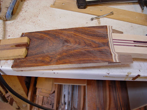 Here's some more stuff happening in assembly.  Top, accents and core waiting for back laminate: