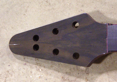 Progress! The peghead veneers follow the shape of the peghead very well: