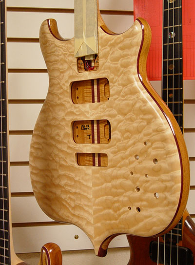 The quilt maple body is finely sculpted and beautifully matched to center.  The wood is so three-dimensional that everyone feels they must touch it- ouch! don't touch!.  I am also able to grab more attention away from other soloists with the amber laser LEDS.  When in the power off position, the LEDS look to me like glass bead fret markers?they?re cool on or off!