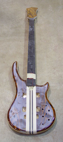 Finish is scraped off and the new neck with Ebony laminates in place. Ready to route and should be back in spray in week or so.