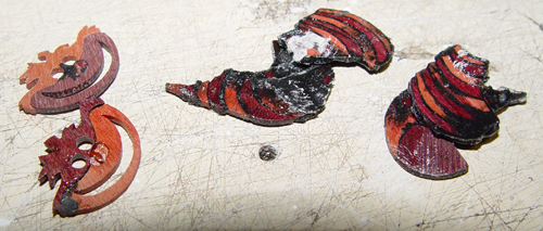 Everything else is covered in glue and not distinguishable, but James got the individual pieces cut while I was gone. Here's the face taking shape: