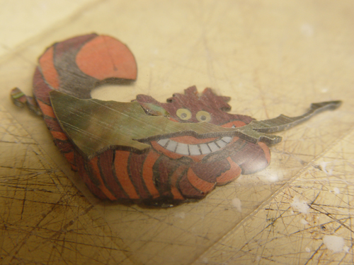 Sure thing - here's the rest of the cat inlay, still goopy with glues: