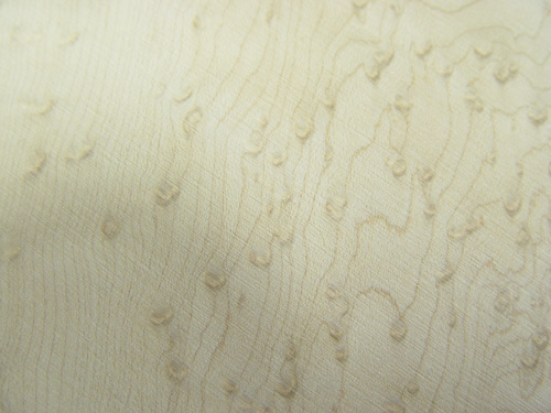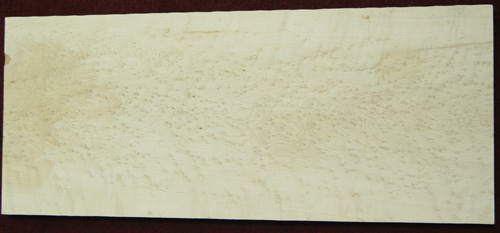 Up close, you can see the Birds-eyes are nice and dimensional.   It's very hard to find a piece of wood this wide (10 onches) that is clear of defects and mineral deposits (those grey and brown streaks).