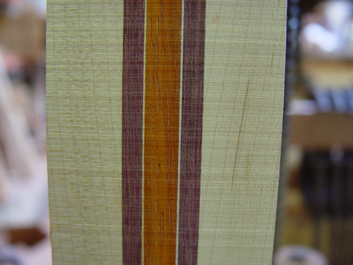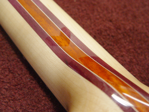the woods are: maple/purpleheart/maple veneer/vermillion/maple veneer/purpleheart/maple