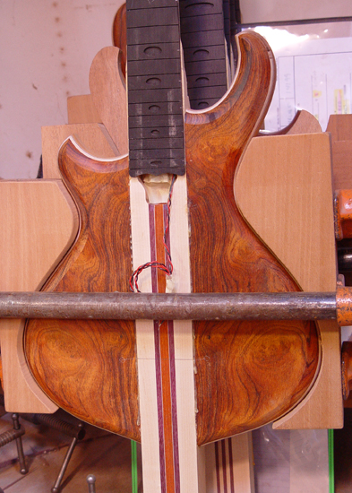 The peghead getting glued up: